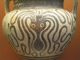 The idea in my mind was to depict the fall of the Minoan civilisation as being a clash between two godlike beings - one bull headed the other the familiar octopus. However hopefully I made it abstract enough people can interpret it in different ways.